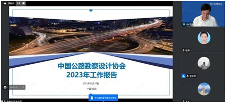 2022年12月17日,中國公路勘察設計協會七屆二次理事會議成功召開。會議采取全部線上的方式,交通運輸部公路局副局長王太、工程管理處副處長賓帆,中交集團黨委常委、副總經理、中國公路勘察設計協會理事長裴岷山,來自全國各地的200多名會員代表在線上參加了本次會議,會議由中國公路勘察設計協會副理事長李志軍主持。