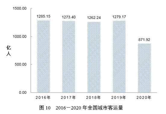 全年完成城市客運(yùn)量871.92億人,比上年下降31.8%。分方式看,公共汽電車客運(yùn)量442.36億人、運(yùn)營(yíng)里程302.79億公里,分別下降36.1%和14.5%;軌道交通客運(yùn)量175.90億人,下降26.3%;巡游出租汽車客運(yùn)量253.27億人,下降27.2%;客運(yùn)輪渡客運(yùn)量0.39億人,下降47.1%。