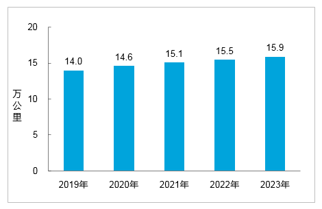 圖2? 2019-2023年年末全國公路里程及公路密度